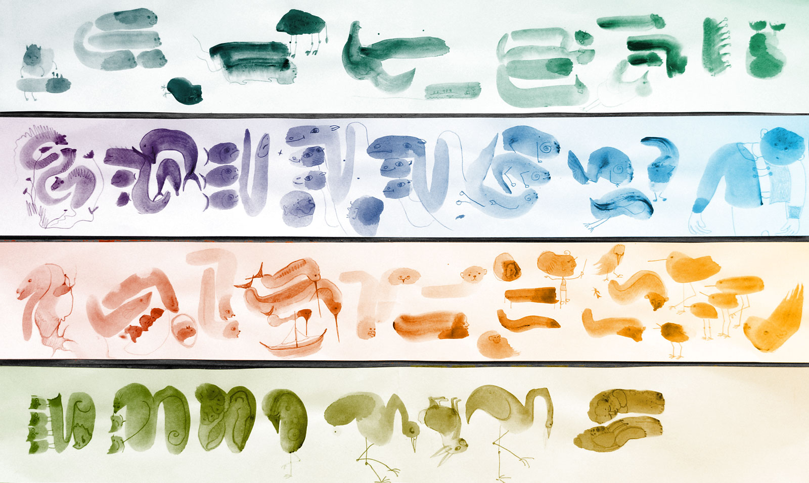 Restpapierstreifen betupfen und mit der Bitte Figuren reinzuzeichnen verschenken.